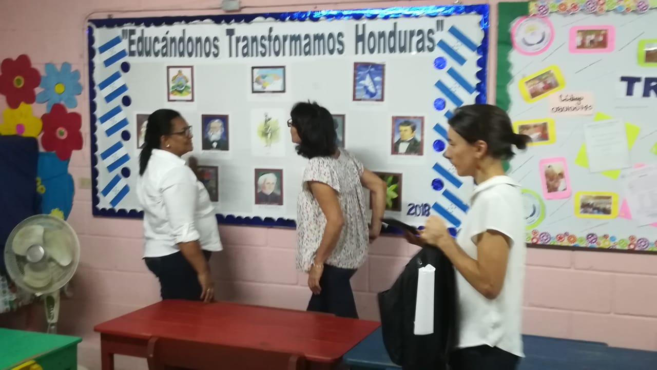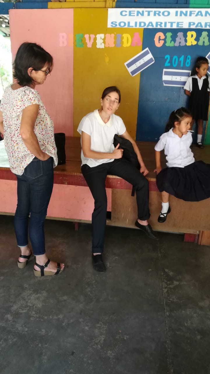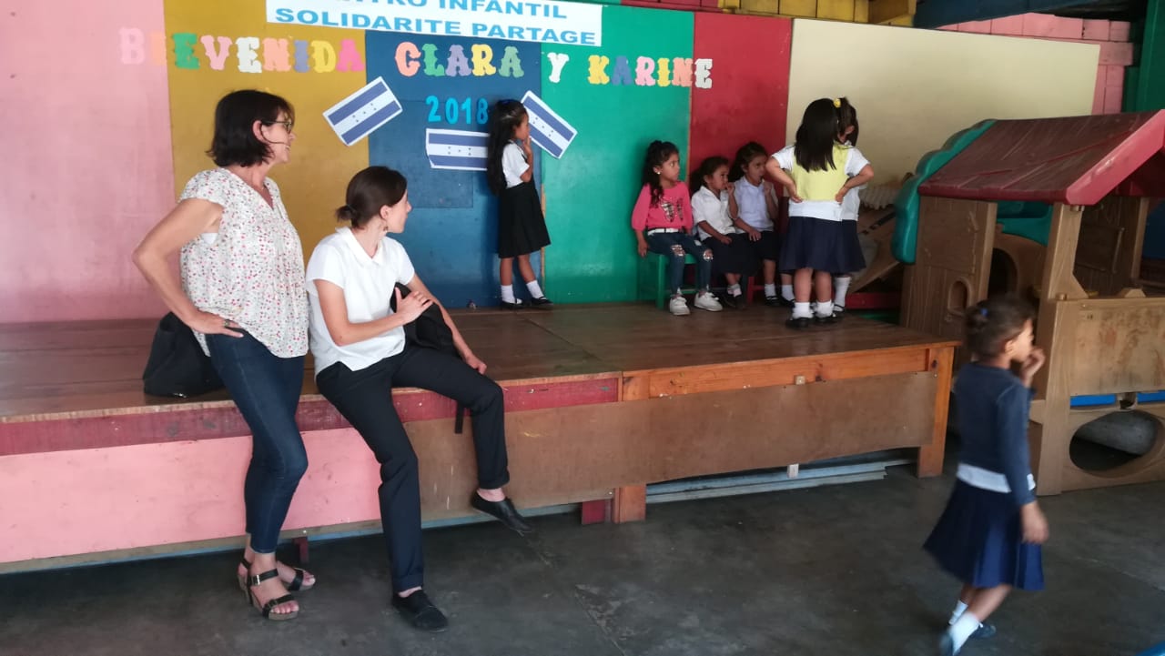Le mardi 19 juin, l’attachée culturelle de l’ambassade de France Clara ARNAUD est venue, accompagnée de Karine BOURGOGNE, directrice du primaire au lycée franco-hondurien, rendre visite au centre infantile. Cela faisait très longtemps qu’un membre de l’ambassade s’était aventuré jusqu’au centre infantile. Cela est très important pour le centre et aussi pour nous, association. Cela montre une reconnaissance de l’action menée depuis 30 ans dans ce quartier.